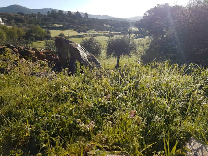 No coração do Parque Natural da Serra de São Mamede, nasce um refúgio especial: um pequeno chalé de pedra, aninhado ao pé da Ribeira de Arronches e com vista para os montes que mudam de cor com as estações. 🌄💚